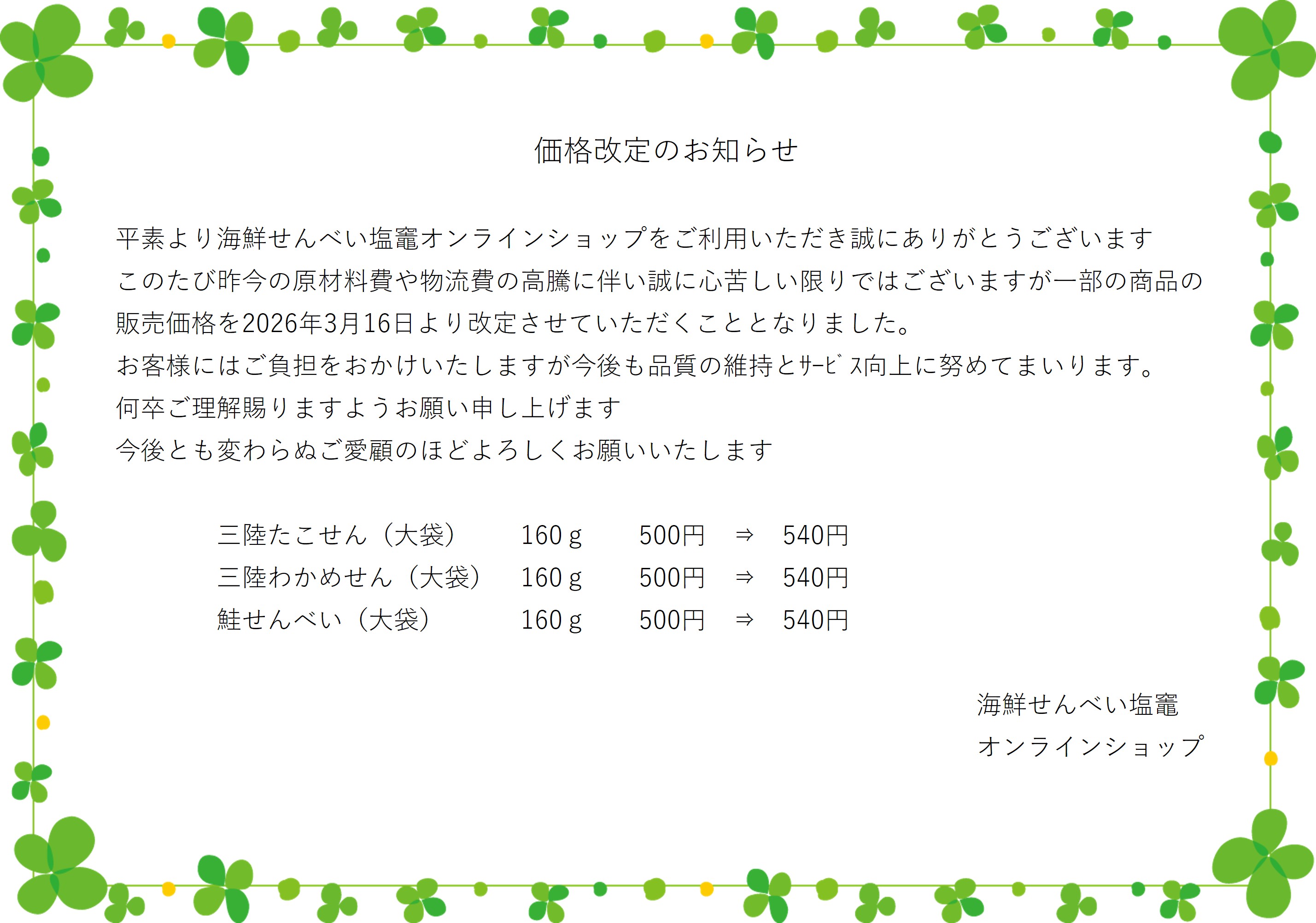 大袋の価格改定のお知らせ ~3月16日より価格改定となります~